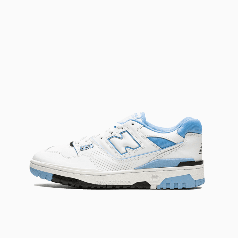 - التنوع: يتوفر New Balance 550 أبيض أزرق جامعي بمجموعة متنوعة من المقاسات، مما يجعله مناسبًا لجميع أشكال القدمين.