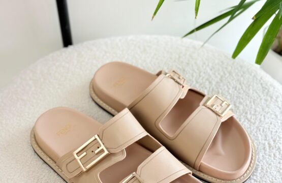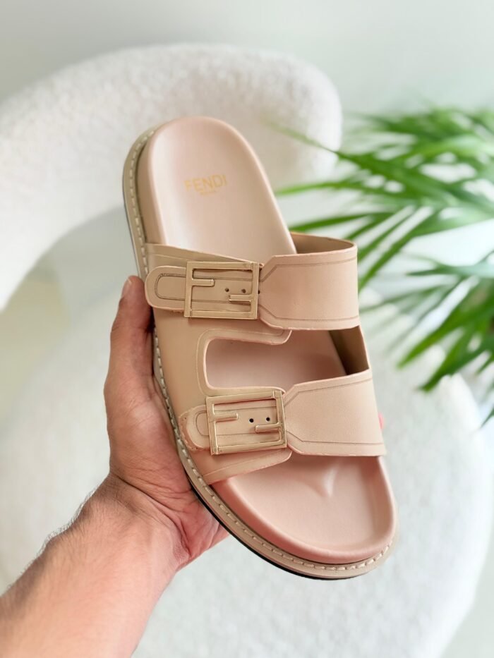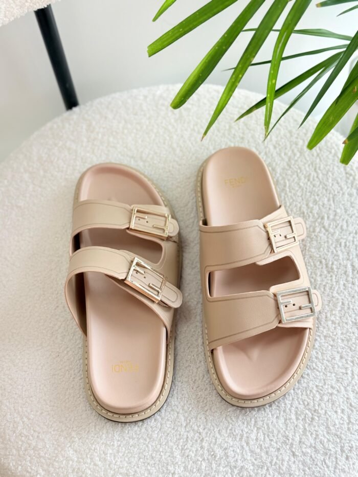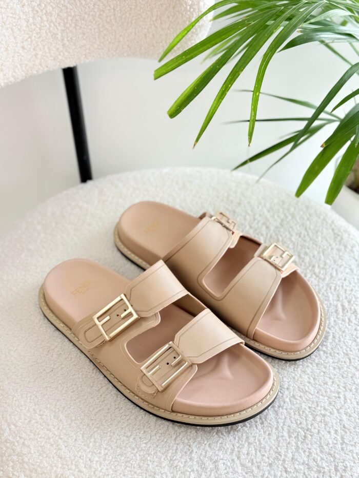 Fendi Flat Slide Sandals in Beige
