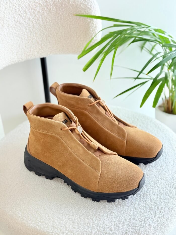 Zegna Triple Stitch Vetta Suede Sneakers in Brown