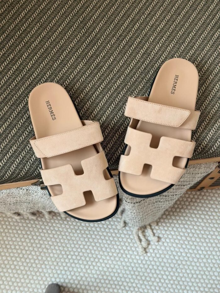 Hermes Chypre Suede Sandal in Beige