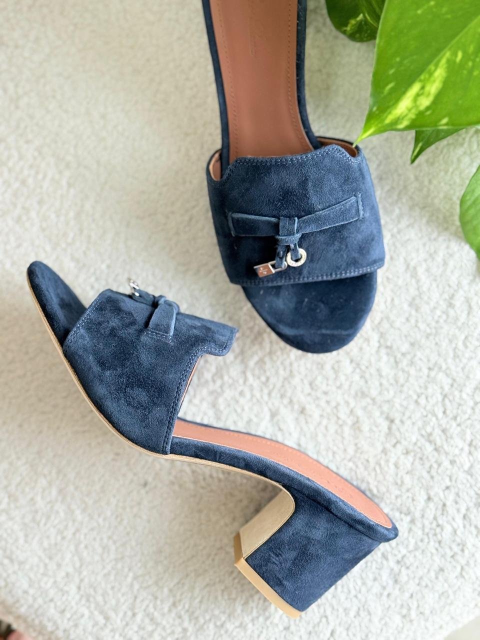 Loro Piana Summer Charms Sandal Suede Goatskin Navy Blue