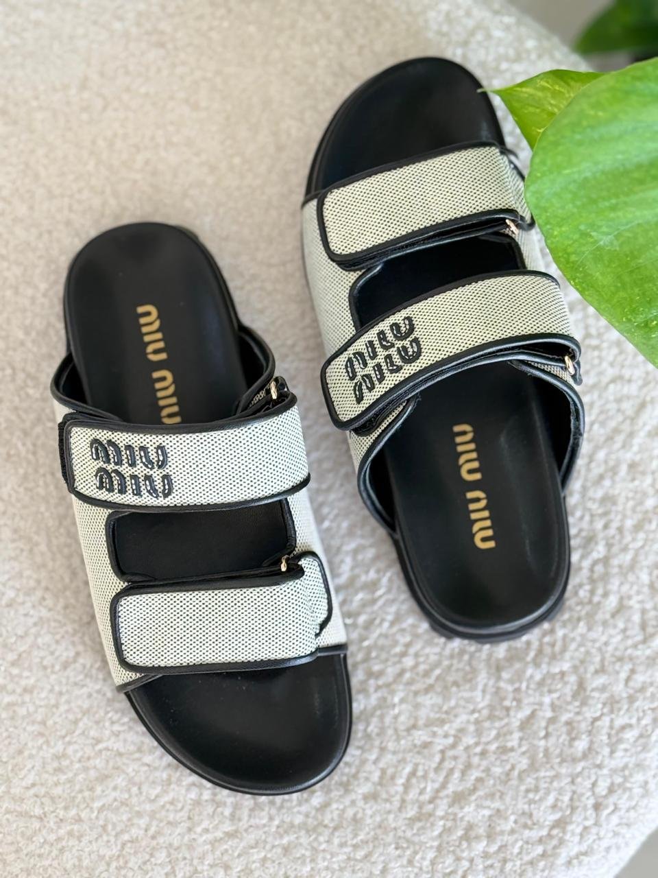 MIU MIU White Canvas Strap Platform Flat Comfort slipper